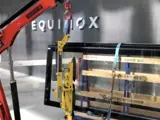 The Equinox stands in a pedestrian precinct in the heart of the City of London. Advanced planning allowed us to close a cycle lane on a busy road for delivery and extraction. Using a Liftboy 700 electric floor crane with an ability to lift up to 700kgs, along with an in-line glass vacuum lifter that could cope with the weight and shape of the doors we were ready to access the job.