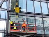 The solution: To attend site inside normal working hours to remove the damaged glass panel from external 2nd floor elevation. Install replacement panel 35mm sealed glass unit 1590mm x 3000mm. Works will involve access and lifting equipment.